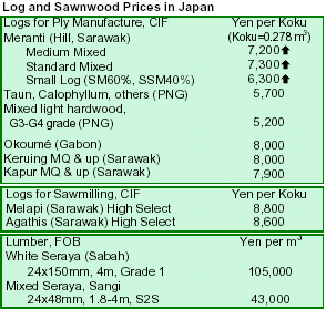 Japanese stocks of Southeast Asian logs are declining amid the persistent gap between export prices and Japan’s prices due to dull demand. Conversely, the export of raw timber materials from Malaysia and Indonesia to other countries is comparatively smooth.