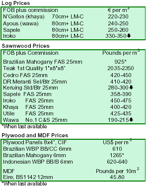 sawnwood. Trade is, however, restricted to parcels now afloat or from stock. Although traders are pleased that