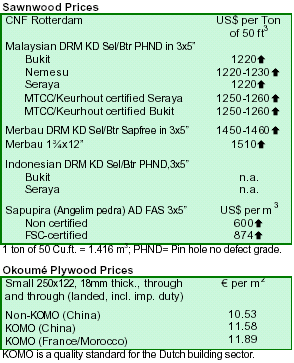 Dutch trade in various tropical species such as dark red meranti (DRM), sapelli and sapupira, is reported as quite