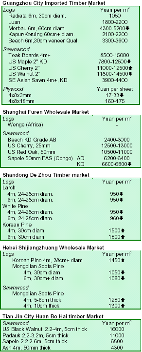 According to China Customs, China¡¯s timber imports continued to grow in the first quarter in 2006, except