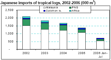 Accumulated log imports in 2006 have come from Malaysia (75%, two-thirds of which from