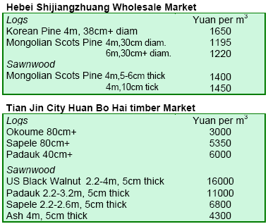 pine plywood (see Report from Brazil). Chinese suppliers had been forced to lower slightly