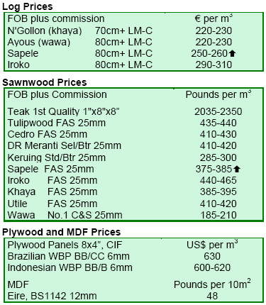 forest sector. The supply of sapele and other African species to the Dutch market was being reactivated but at a
