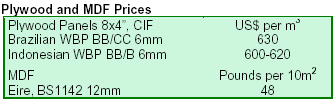 tropical sawnwood. An expected 9-10% increase in okoume plywood prices did not materialize probably due