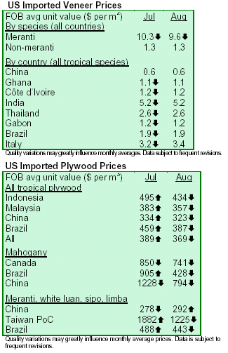solid wood products, including veneer and lumber in September this year (see TTM 11:18). As a result, Chinese