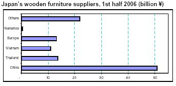 Japan’s furniture imports totaled ¥240.64 billion during the first half of 2006, up 111% from last year, according to