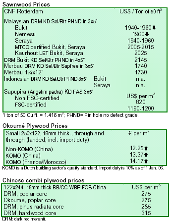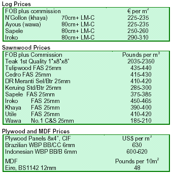 sawnwood. However, an expected increase in okoume plywood prices finally materialized, with prices surging
