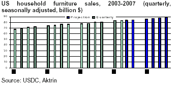 Furniture consumption in the USA grew at a rate of 4.7% in 2005. In line with the advances of disposable income,