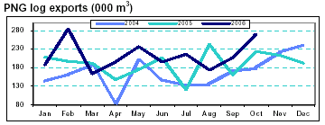 Log exports from PNG rose to 270,161 m3 in October 2006, up 31% from September and 21% from October