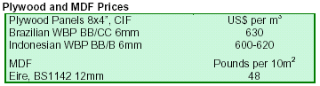 Plywood was in short supply in the UK, except Chinese plywood which was undergoing a temporary oversupply in