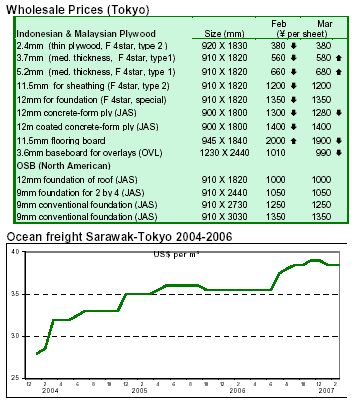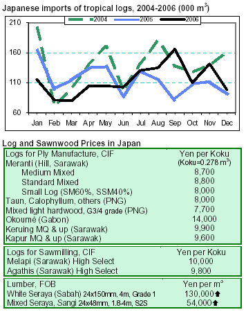 since March 2006, helped by stronger prices (see chart). Overall, total Japanese imports of tropical logs amounted