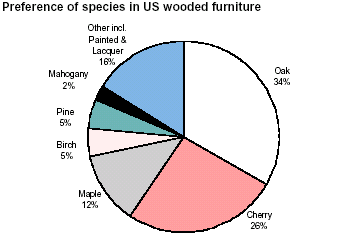 US furniture categories combined are oak, cherry, maple and birch, in that order (see chart). Oak (red and white)