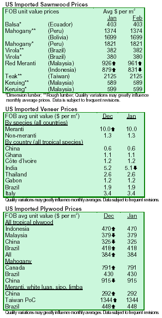 though the average price of tropical hardwood lumber is much higher than the average price of imported