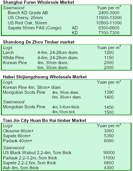 demand for natural timber and wood products from furniture production bases in China, especially those in