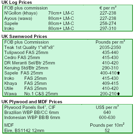 shipments to the UK are being stopped, reported TTJ. In the sawn hardwood sector, the quiet market
