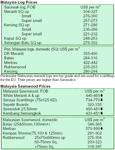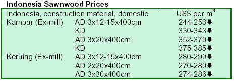 marginally. Prices of sawn timber were mixed even with steady demands from China and the Middle East.