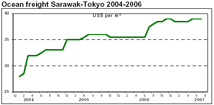 Japanese log exports in the year 2006 were 13.4 times that in 2002 versus 2006 and nearly five times the value. The Ministry