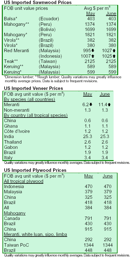 Source: ITTO'  Tropical Timber Market Report