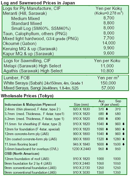 Prices of imported plywood were low due to adjustments being made to port inventories.