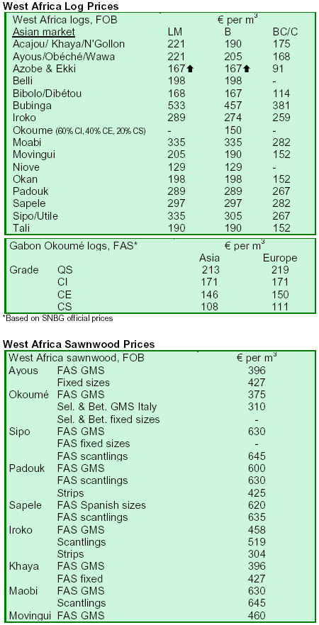 half of February. LM grade afrormosia for Europe gained