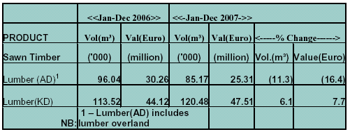 Kiln dried lumber exports in 2007 were 120,480 m3, or