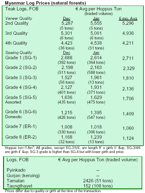stable. Prices for purpleheart logs rose 10 percent over the