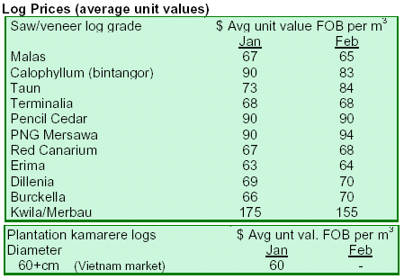 Prices for logs, sawnwood and plywood remain relatively