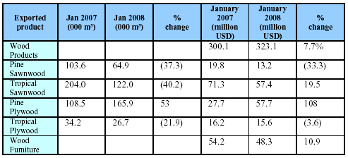 Sawnwood was still the main exported item, representing
