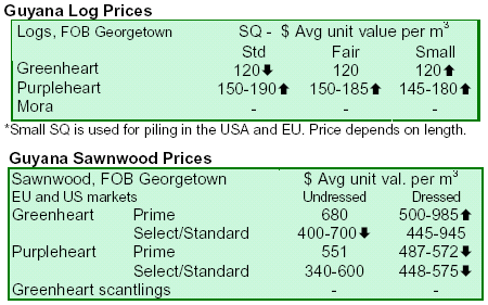 prices for sawnwood, most notably undressed purpleheart