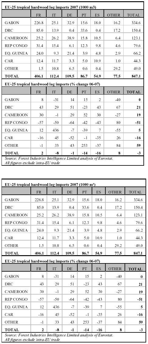 logs in 2007 were France (406,100 m3), Italy (112,400
