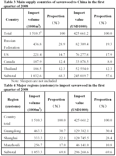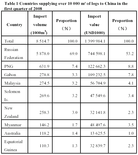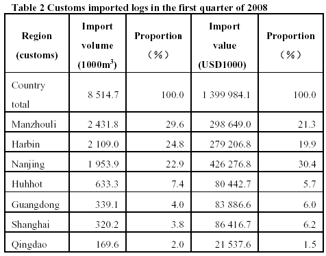 imported over 10,000 m3 of logs at first quarter of 2008.
