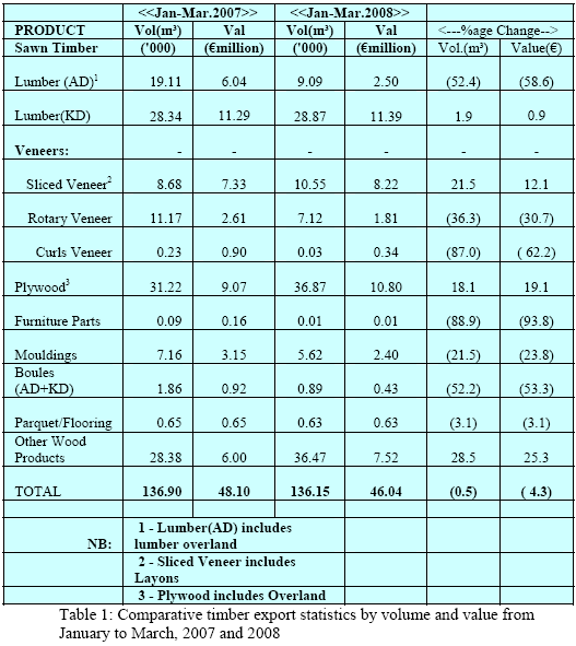 2008 to 7,120 m³ valued at EUR1.8 million.