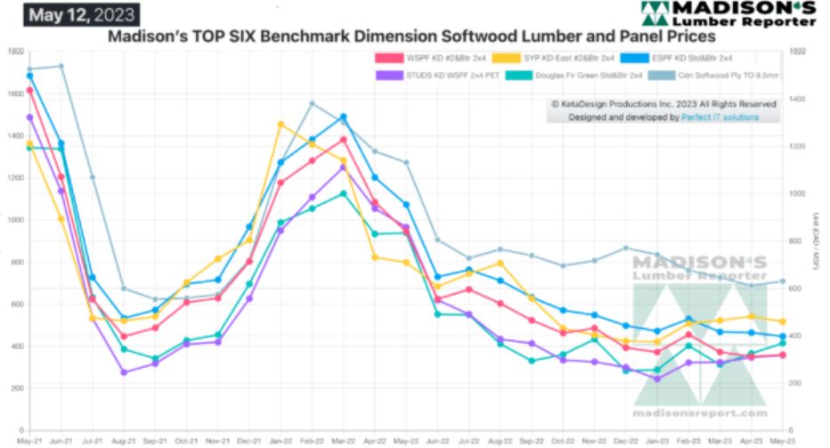 Madison’s Benchmark Top-Six Softwood Lumber and Panel Prices: Monthly Averages