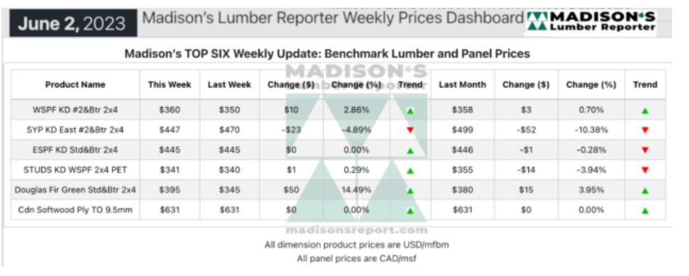 Madison’s Benchmark Top-Six Softwood Lumber and Panel Prices: Monthly