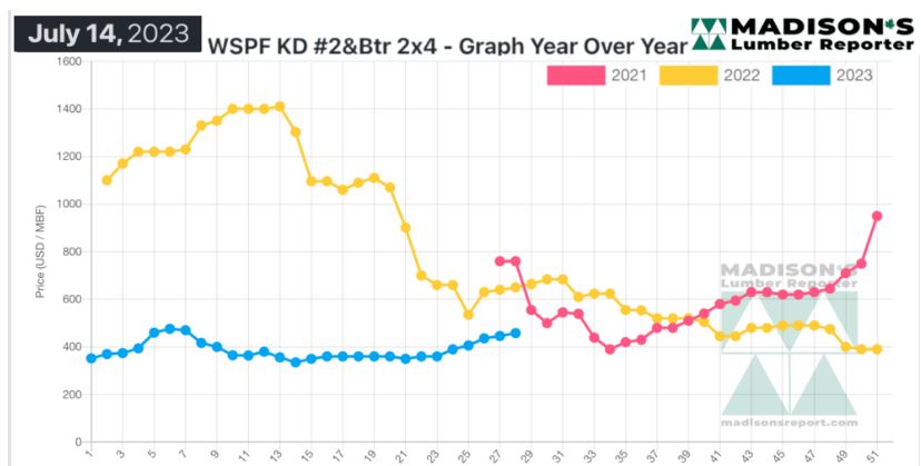 In the week ending July 14, the price of Western Spruce-Pine-Fir 2×4 #2&Btr