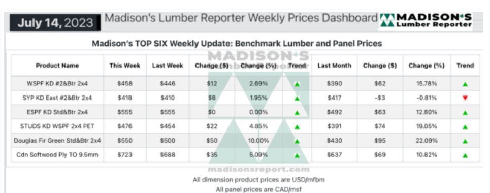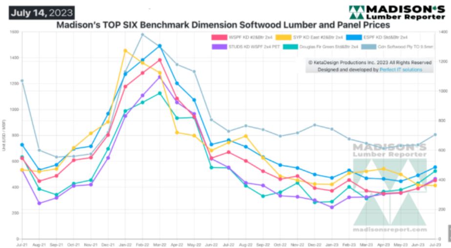 Madison’s Benchmark Top-Six Softwood Lumber and Panel Prices: Monthly
