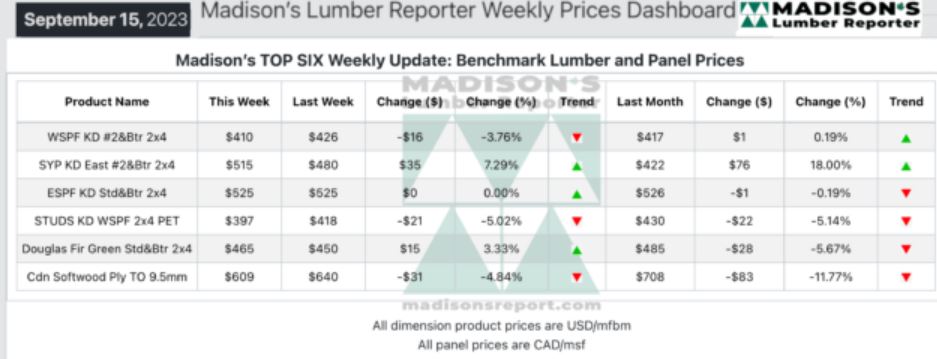 In the week ending Sept. 15, the price of Southern Yellow Pine East Side 2×4
