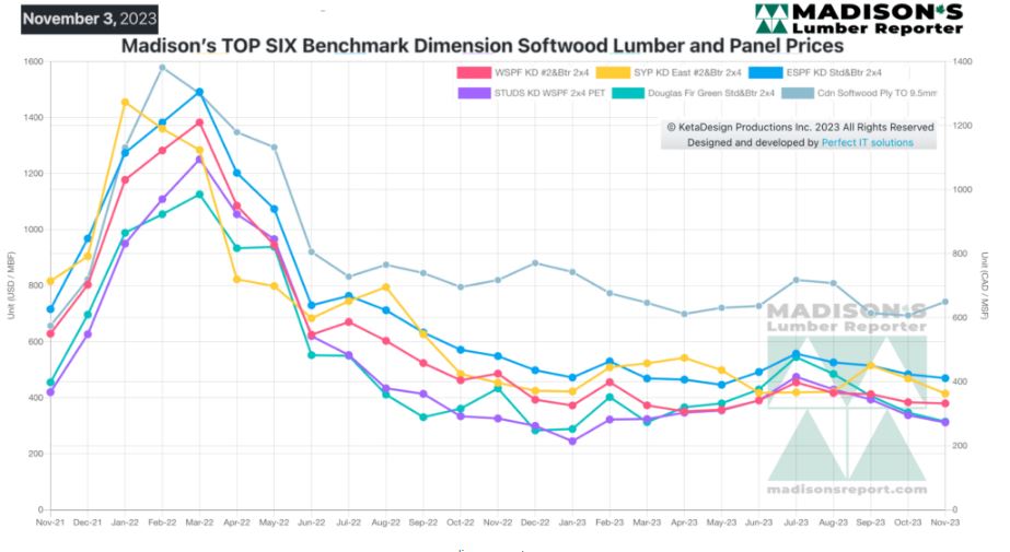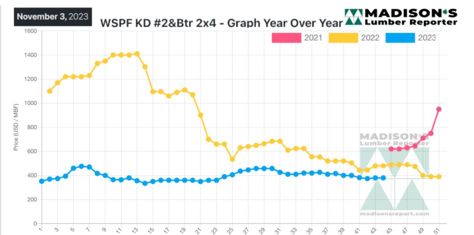 In the week ending November 3, 2023, the price of Western Spruce-Pine-Fir