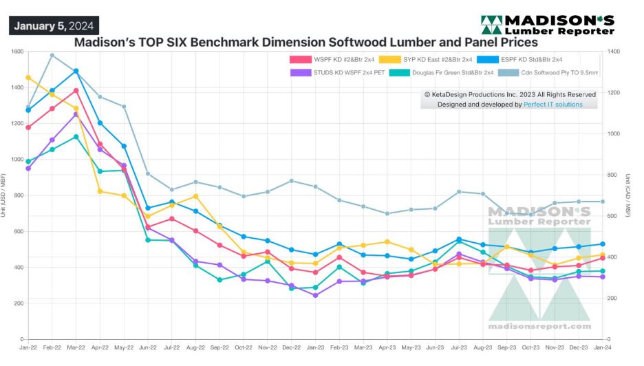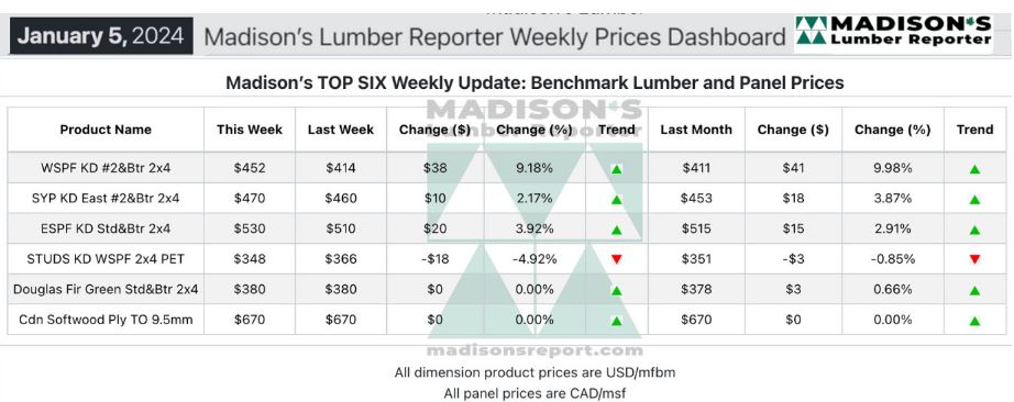 Madison’s Lumber Reporter. This is up by +$38, or +9%, compared to the