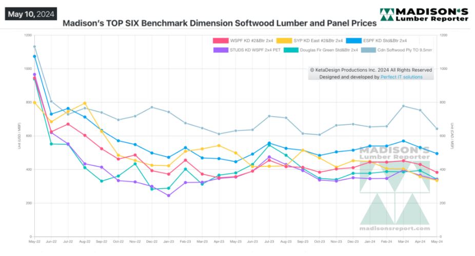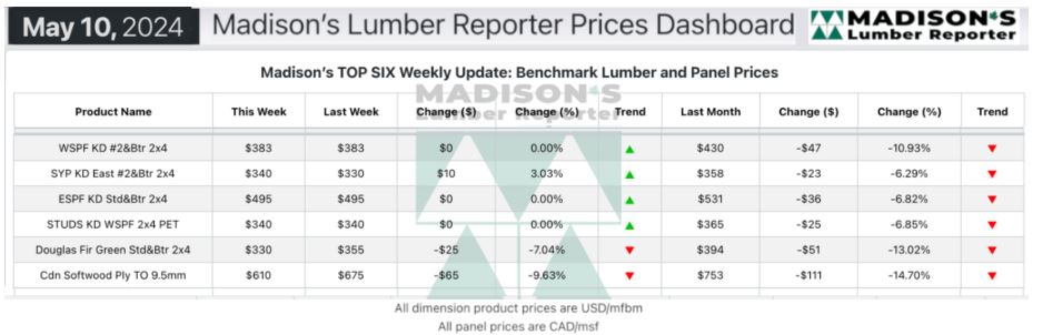 MADISON’S BENCHMARK TOP-SIX SOFTWOOD LUMBER AND PANEL PRICES: MONTHLY