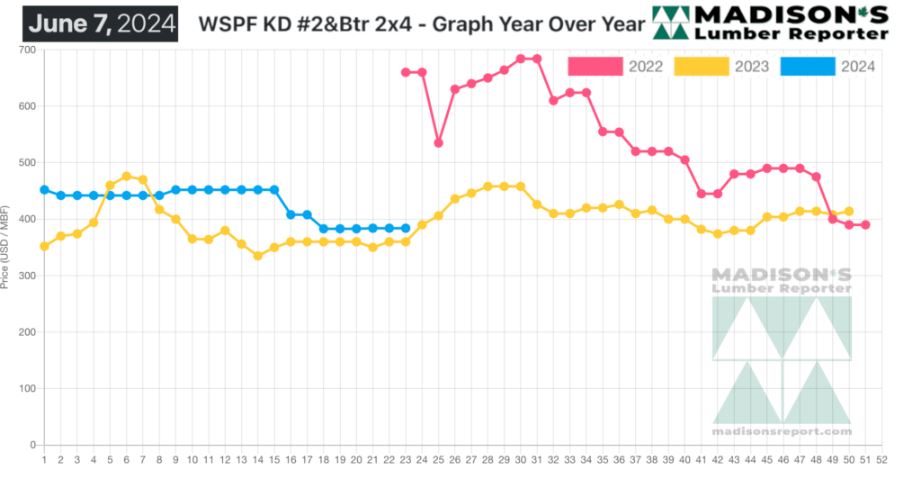 Western Spruce-Pine-Fir 2×4 #2&Btr Kd (Rl) For The Week Ending June 07, 2024