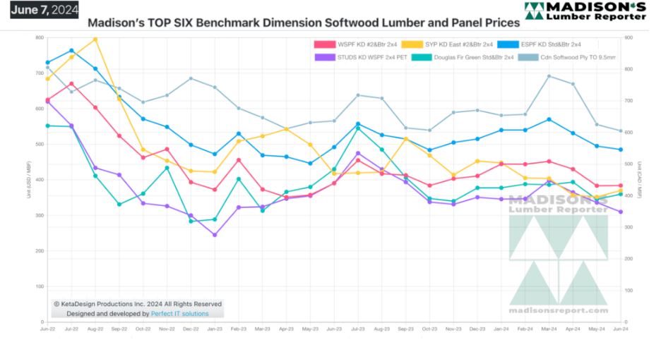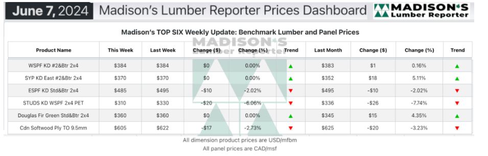 MADISON’S BENCHMARK TOP-SIX SOFTWOOD LUMBER AND PANEL PRICES: MONTHLY