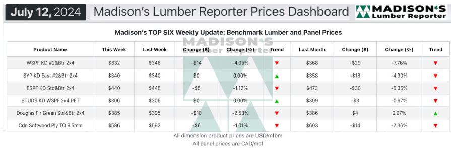 MADISON’S BENCHMARK TOP-SIX SOFTWOOD LUMBER AND PANEL PRICES: MONTHLY