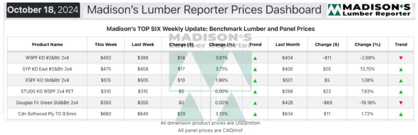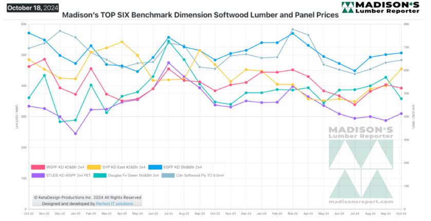 In the week ending October 18, 2024, the price of benchmark softwood lumber