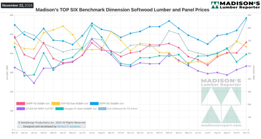 In the week ending November 22, 2024, the price of Western Spruce-Pine-Fir