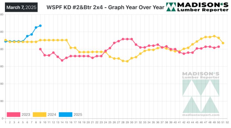 Western Spruce-Pine-Fir 2×4 #2&Btr Kd (Rl) For The Week Ending March 07,