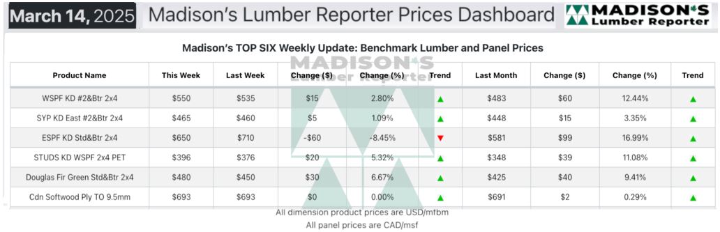 MADISON’S BENCHMARK TOP-SIX SOFTWOOD LUMBER AND PANEL PRICES: MONTHLY