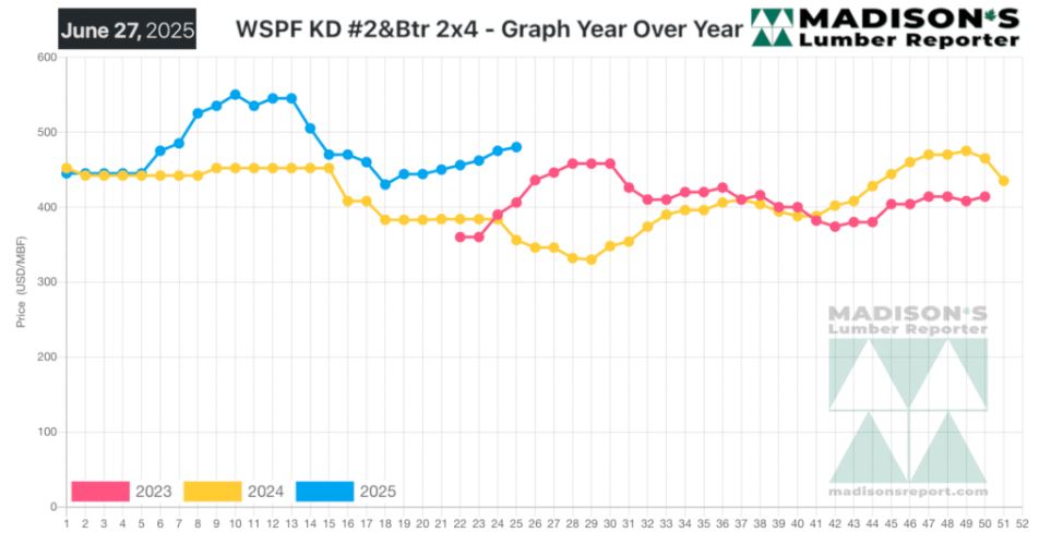 Western Spruce-Pine-Fir 2×4 #2&Btr KD (RL) for the week ending June 27, 2025