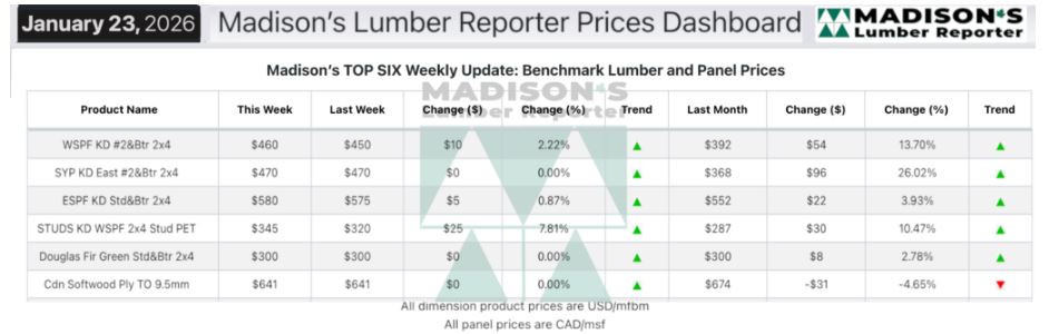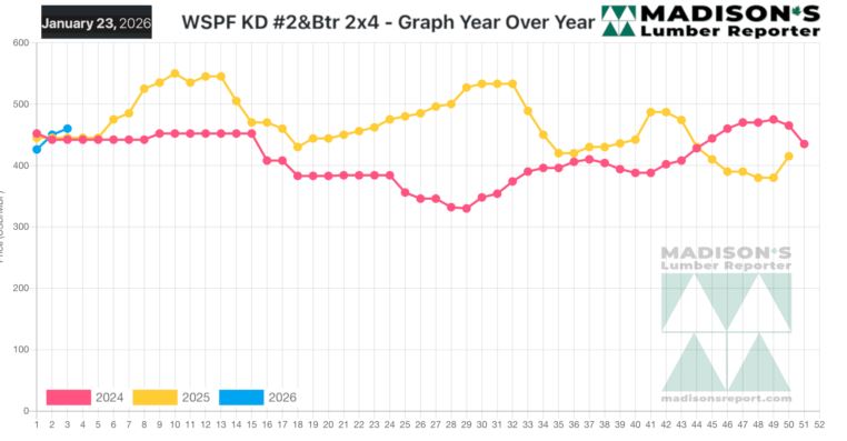In the week ending January 23, 2026 the price of Western Spruce-Pine-Fir 2×4