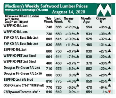 “Softwood lumber prices climbed yet again as frustration and urgency among buyers reached a fever pitch.” — Madison’s Lumber Reporter